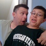 It is Wednesday night and that means my Grandchildren are spending the night with my son and I and as always it is chaotic and crazy but always fun! Sloppy Joes were on the menu tonight and they were very good, they must of been outstanding because my grand son ate 4 of them, I am always astounded at the amount of food that young man can consume and not get fat. Some place back in the dark recesses of my memory I remember a skinny little girl who could eat like that and still remain a tooth pick but alas that was many years ago and I will never again be called Skinny Minnie, so watch out little Bill, like Grandma you may not always be so lucky! Then came homework and then the goofing around that seams to happen when my son and his kids get together, don’t know who is the bigger kid him or them. You can judge yourself be these crazy photos